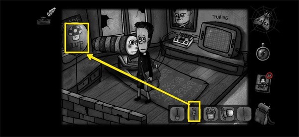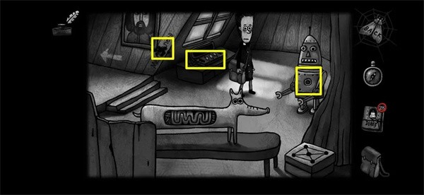 6、进入挂有科学家画像的机器人房间,为机器人上紧发条,它将赠予你一件尖锐道具