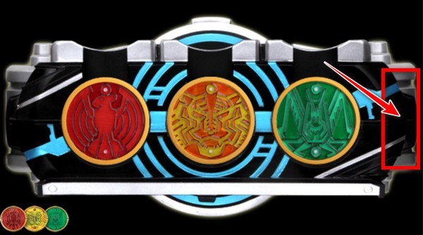 这是火野映司变身假面骑士OOO时使用的腰带。通过将3枚核心硬币装入驱动器,并利用“O扫描环”释放其力量完成变身。核心硬币的不同组合会改变骑士的头部、腕部和腿部,这是该系统的核心特点。它既可以组合出发挥强大攻击力的形态,也能针对特定敌人形成特殊亚种。