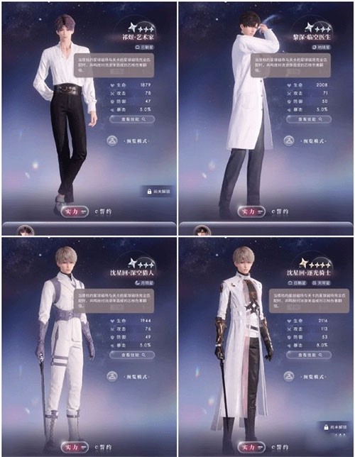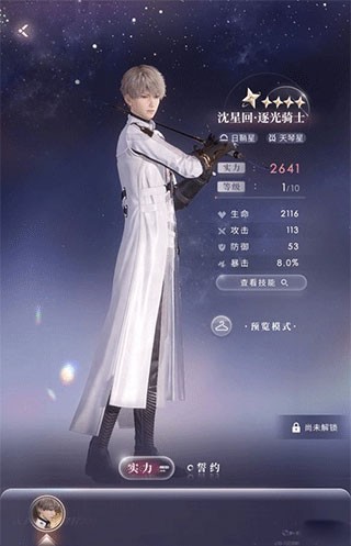 2、以沈星回为例,五星“逐光骑士”套装相比四星“深空猎人”,基础属性面板更高。