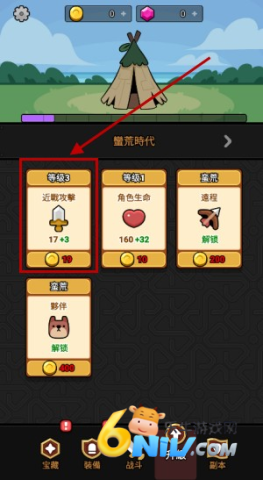 1、回到游戏主界面,点击屏幕下方的升级按钮。
