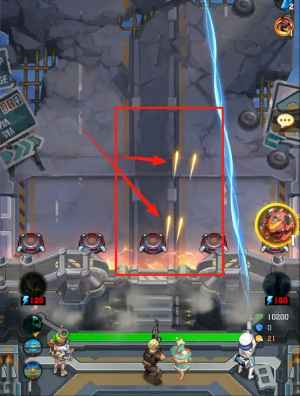 2、实战表现:齐射+穿透+枪械伤害三件套组合,让前期推图几乎毫无压力,小怪群尚未靠近防线便已被清理殆尽。