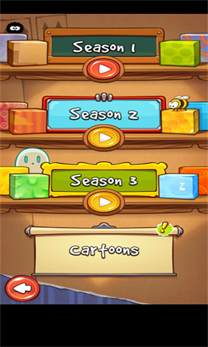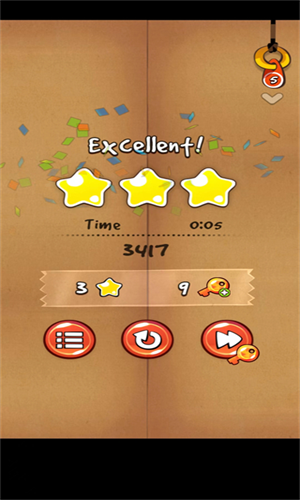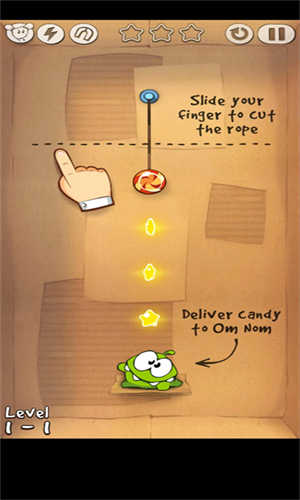 游戏中如果你对某一关卡评分不满意的话,你还可以选择重玩该关卡,直到取到满星跑分为止!为满足广大玩家们的需求,割绳子1游戏还特意为玩家们准备了多达十三个主题级别箱,每个主题中还包含了多达325个关卡,并且随着关卡的推进,难度也会不断增加,要想顺利打通关,还是需要一些技巧以及借助游戏中的道具才能完成。