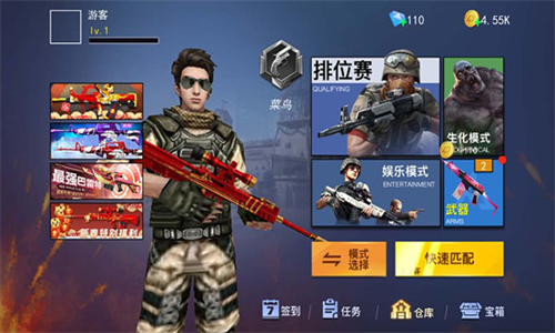 2、不同的游戏模式给你带来更多的乐趣,感受排位赛、生化模式、狙击模式、双人模式等,自由选择玩