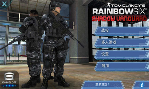 1、有史以来第一款登陆Android系统的Tom Clancy的彩虹六号(Rainbow Six;)游戏!