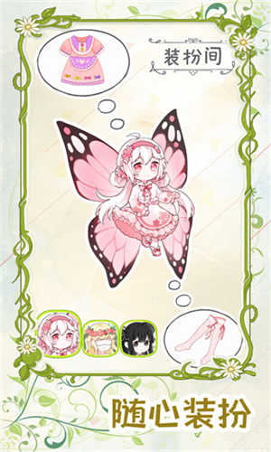 游戏中所有的蝴蝶都是非常的可爱呆萌,大家可以自由的去选择自己喜欢的蝴蝶,玩家将通过喂养蝴蝶的方式来获取金币。代号蝶游戏游戏有丰富的装饰内容可供玩家自由设置,你可以随心所欲地对小蝴蝶进行装扮;精美的卡通风格换装玩法,玩家通过关卡解锁各种场景。