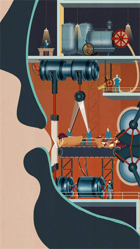 4、玩家戳屏幕来观赏工人们运转机器:用滑轮抬起眼皮,撑大瞳孔让光照进来,看细菌如何经过鼻腔过滤被消灭大半,而牙齿变成了切割机。