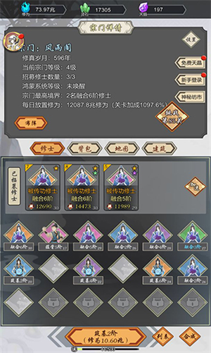 2、玩家可以选择自己喜欢的角色进行养成,让自己的角色学习强大功法。