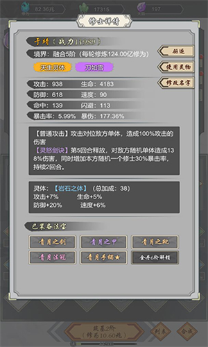 3、属性随机、多品质的法宝,灵体,搭配随机领悟的功法,可培养自己独特的修士。