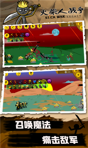5、诙谐漫画风格,各种奇葩的火柴人战士等你召集,迅速组建一支强大的军队。