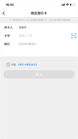 6、身份确认无误后,在指定位置重新输入想要绑定的银行卡信息,完成换绑卡操作。