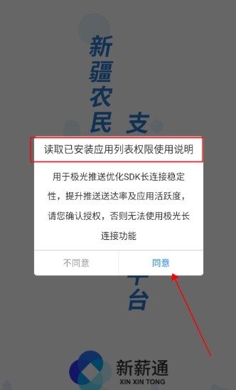 3、此时会弹出读取已安装应用列表权限的使用说明,点击“同意”按钮。