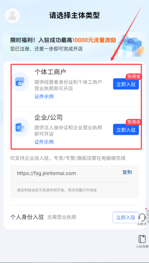 1、点击选择您对应的主体类型。