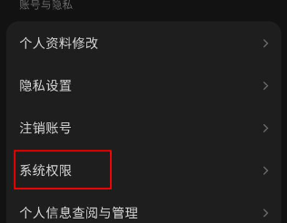 3、在设置页面中,点击【系统权限】。