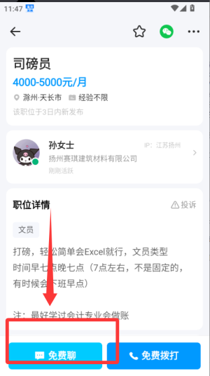 4、确定意向岗位后,可以直接联系招聘方,沟通面试细节。请注意选择正规场所进行面试,并保护好个人安全。