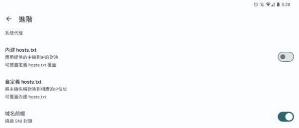 进入「进阶」选项,开启「代理」和「域名前置」功能,以绕过审查。