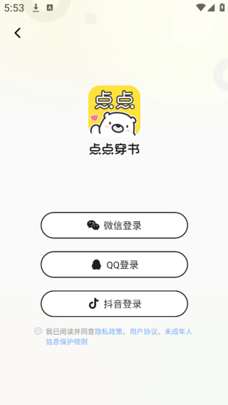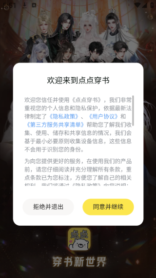 1、先下载最新版点点穿书APP,进入时需同意隐私权限。