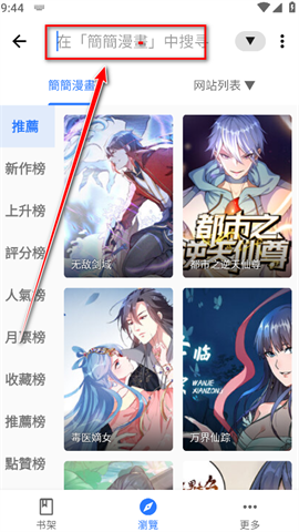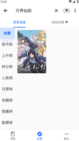 2、用户可以一键搜索并将自己喜欢的漫画添加到书架上,并会在第一时间间接收到更新的漫画章节。