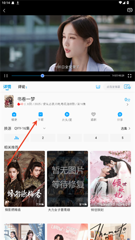 2、进入视频播放页面,点击屏幕的下载按钮。