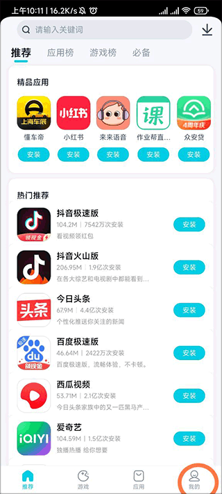 3、然后进入推荐页面就可以下载你想要的了,如果没有推荐页面,也可以点击上面的搜索框搜索。