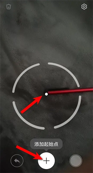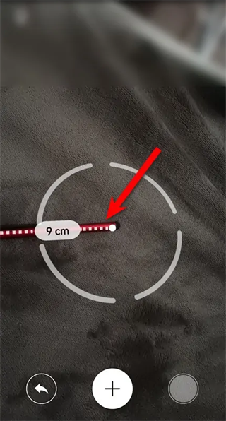 2、将屏幕上的圆点中心对准测量的起始位置,点击加号按钮。