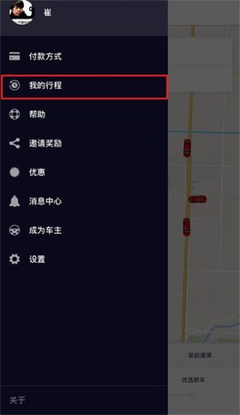 1、打开手机上的uber软件,在个人信息页面点击“我的行程”。