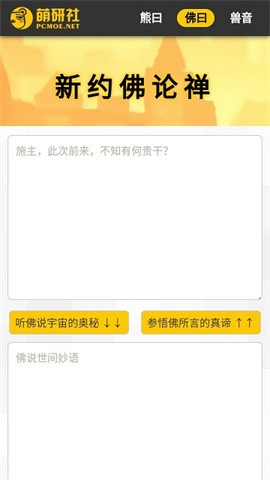 进入软件后,软件提供熊曰(与熊论道)、佛曰(新约佛论禅)、兽音(兽音译者)。