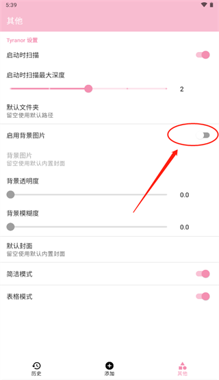 2、在设置页面中,找到并点击“启用背景图片”功能。