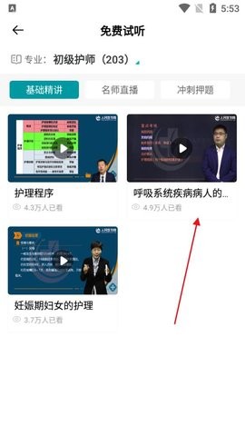 3、进入试听列表页面,点击任意课程即可开始播放试听;