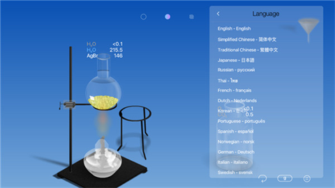 1、高度逼真的化学实验场景和设备,让用户感觉就像在一个真实的化学实验室里。