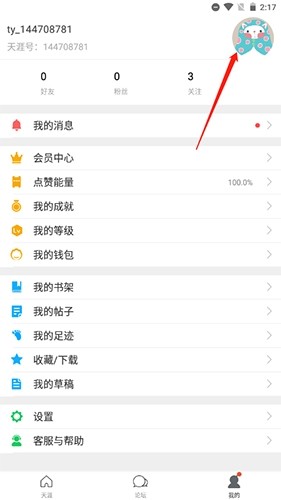 1、在本站下载并打开天涯社区app,点击“进入”,找到登录后点击右上角。