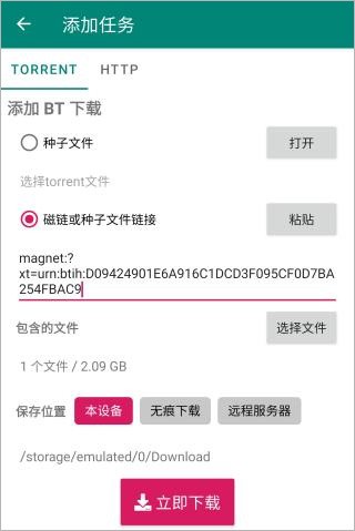 2、选取本地种子文件,或在输入栏粘贴磁力地址;
