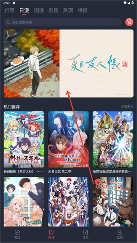 2、安装完成后打开应用,在频道页面的搜索栏中,输入你想看动漫的关键词,即可进行搜索。