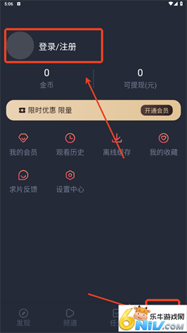 1、打开动漫共和国app,进入“我的”页面,点击“登录/注册”按钮。