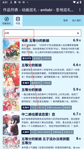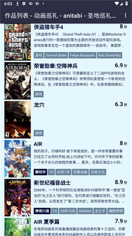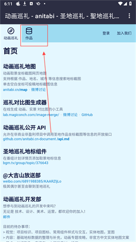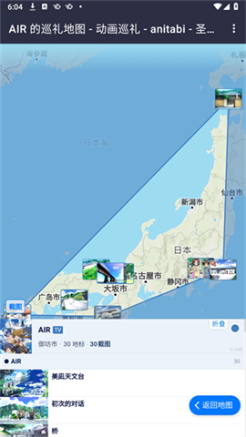 1、地图显示了动画作品的实际位置,每个坐标点都附有动画的相关截图。