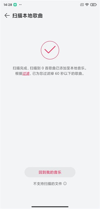 5、扫描完成后,即表示本地歌曲已成功导入。