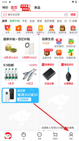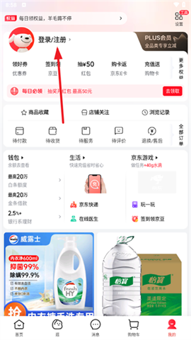 1、在本站下载并安装京东App,打开应用后进入首页。
