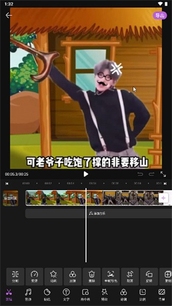 4、接着进行画面的剪辑操作,并添加特效与音乐。