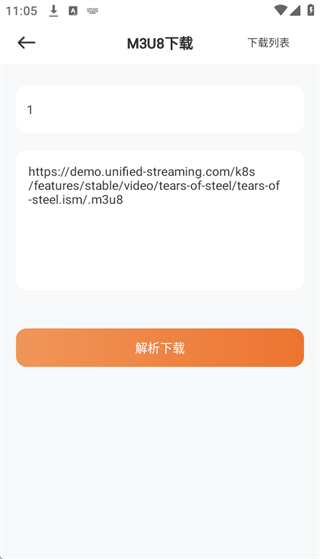 2、在应用中输入需要下载的链接到搜索框,点击【解析】按钮。