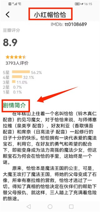3、点击进入详情页,可以查看评分、剧情介绍等详细信息。