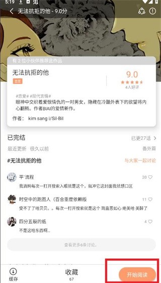 5、找到喜欢的漫画后,点击进入,再点击“开始阅读”就能看啦。