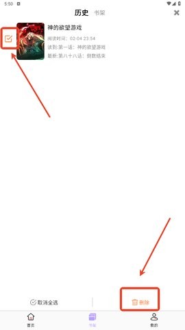 2、勾选需要移除的漫画作品,确认无误后点击【删除】按钮即可清除。