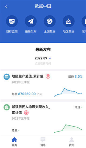 数据中国app最新版下载安装2023是国家统计局官方打造一款数据统计查询平台,在这里有着国内最为权威的统计结果,都是非常准确和正规的,各项数据指标应有尽有。而且便于做各类的数据统计工作。拥有目标监测、最新发布、全国数据、地区数据等等划分清晰的版块,政府部门和专业研究机构的专家也都在使用这款软件。