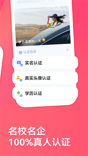 2、多重认证:身份证、头像等全平台认证,杜绝网骗照骗;