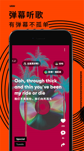 2、弹幕听歌不孤单 喜欢它就说出来。