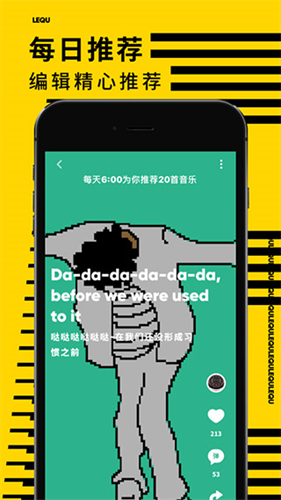 1. 有趣的音乐应用选择栏是一个垂直的屏幕信息流模式。探索栏有一个歌曲列表。有趣的音乐应用会在每天早上6点向用户推荐20首音乐。