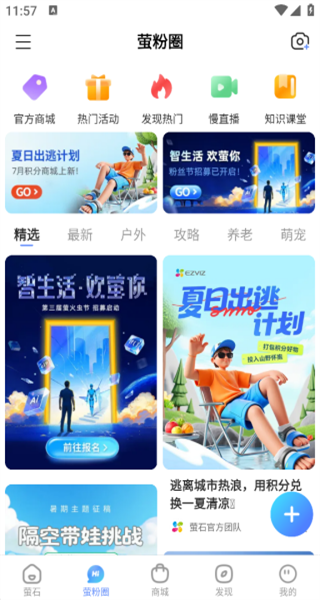 3、在软件的萤粉圈页面,可以使用官方商城、热门活动、发现热门以及慢直播等功能。