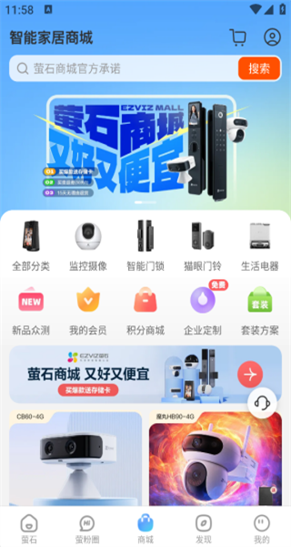 4、在软件的商城页面,可以选购监控摄像、智能门锁、猫眼门铃、生活电器等产品。
