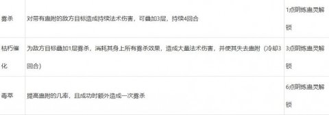 当法宝没有得到强化,就没有魔术在开场。在魔法武器加强到10层后,你会得到未分配的毒,建议初始优先分配给阴毒,并点雾击杀,以便轻松对付怪和补充伤害。