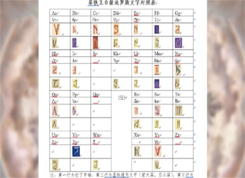 持有翁法洛斯文字对照表(可从官方活动图鉴获取)