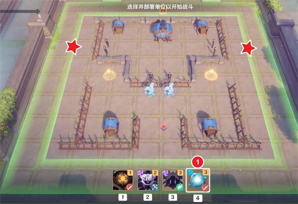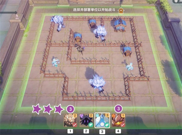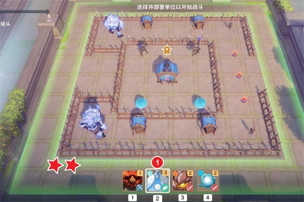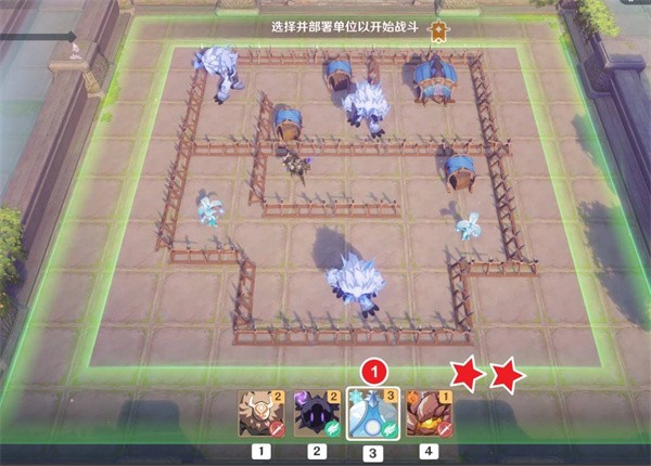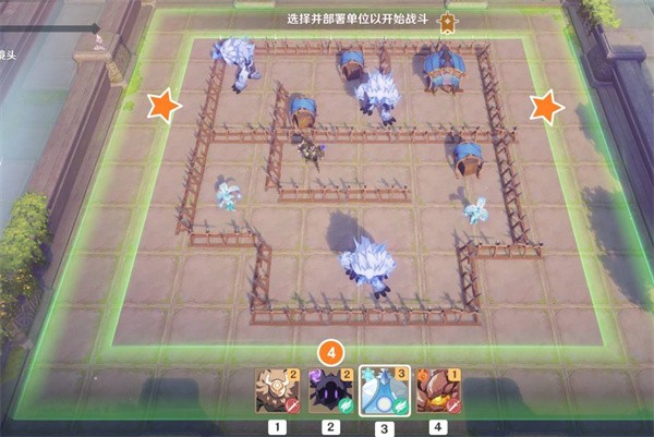 1、游戏初始在左下部署2只飘浮灵,解决丘丘霜铠王与史莱姆